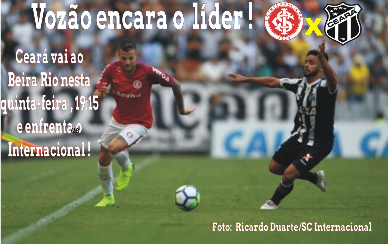 O Ceará volta a campo nesta quinta-feira (10/9), pelo Campeonato Brasileiro, em sua nona rodada, e tem um desafio dos mais complicados. Jogará diante do líder Internacional, às 19h15 no estádio Beira-Rio, em Porto Alegre. O alvinegro de Porangabussu ocupa a décima colocação depois dos jogos desta quarta-feira (9), com 10 pontos, 3 vitórias, 1 empate e 4 derrotas, 8 gols marcados e 10 gols sofridos.